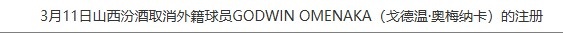 2025-03-11 23:20:40山西男篮取消戈德温-奥梅纳卡的注册 并为凯西-普拉瑟完成注册