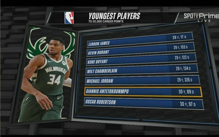 2025-03-06 13:22:31字母哥30岁89天解锁2万分历史第6年轻 仅次于詹杜科&大帅&乔丹