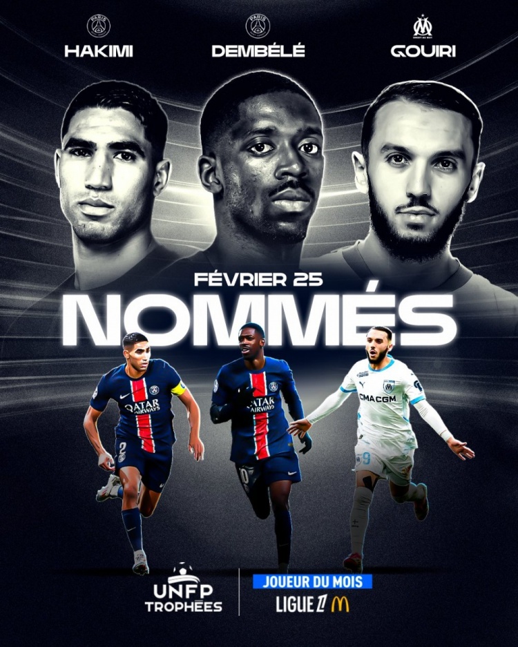 2025-03-02 22:08:32法甲2月最佳球员候选:登贝莱6球、阿什拉夫2球、古伊里2球3助